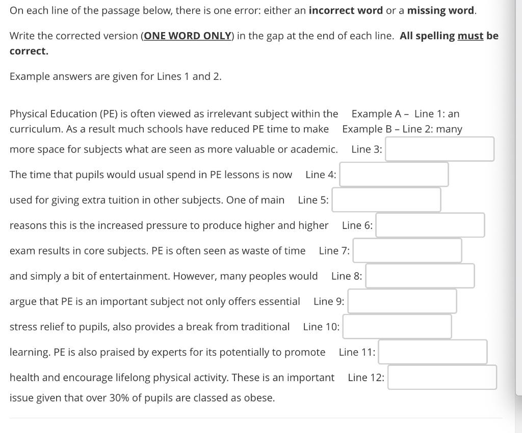 Solved On Each Line Of The Passage Below There Is One Chegg Com